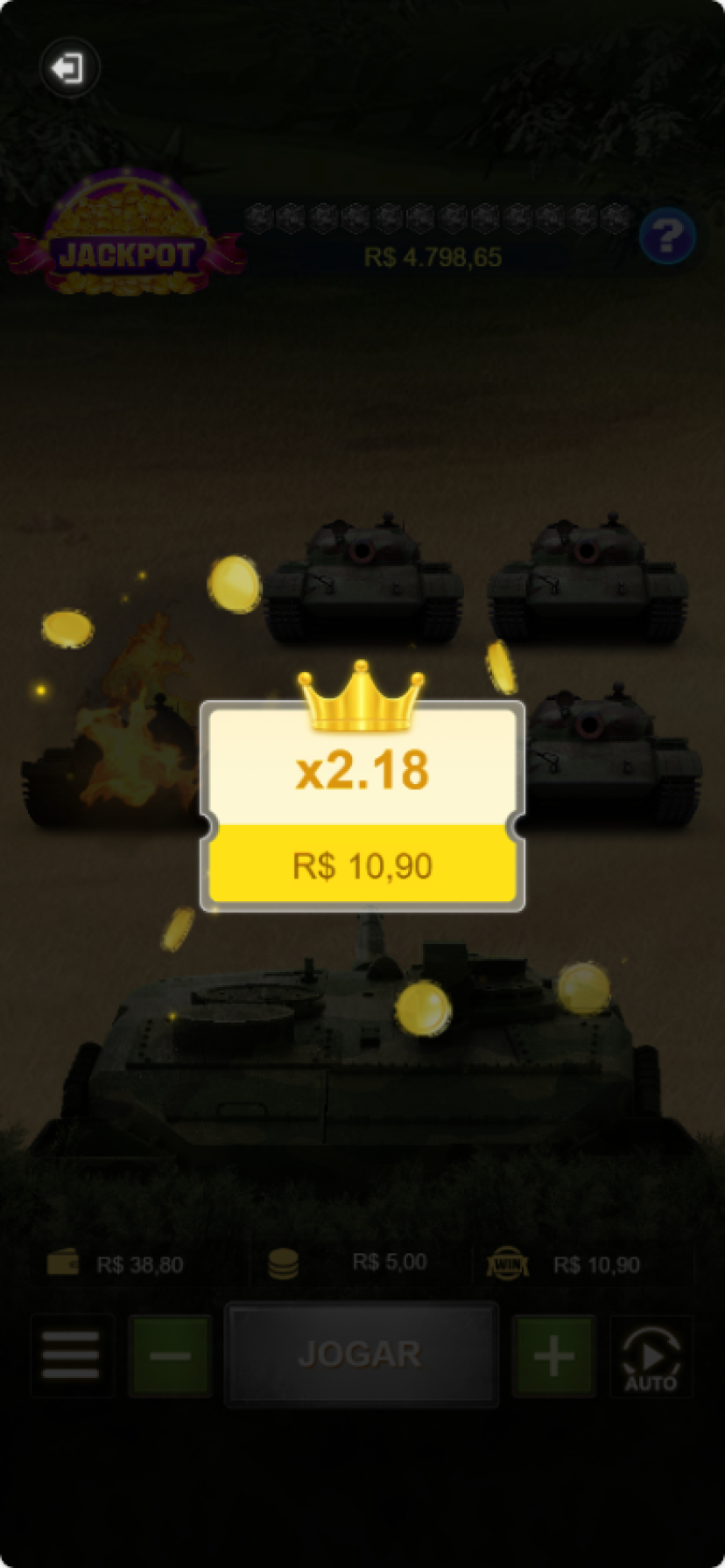 A tank-themed crash game, where the more lucky tanks found, the higher the rewards, and players can cash out at any time.