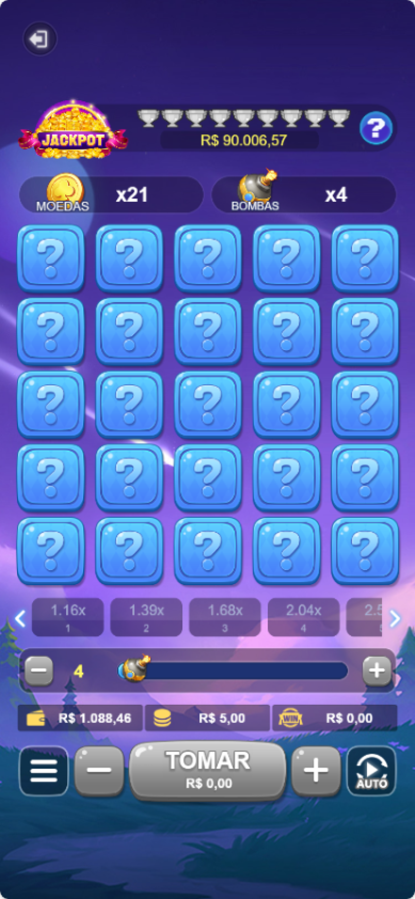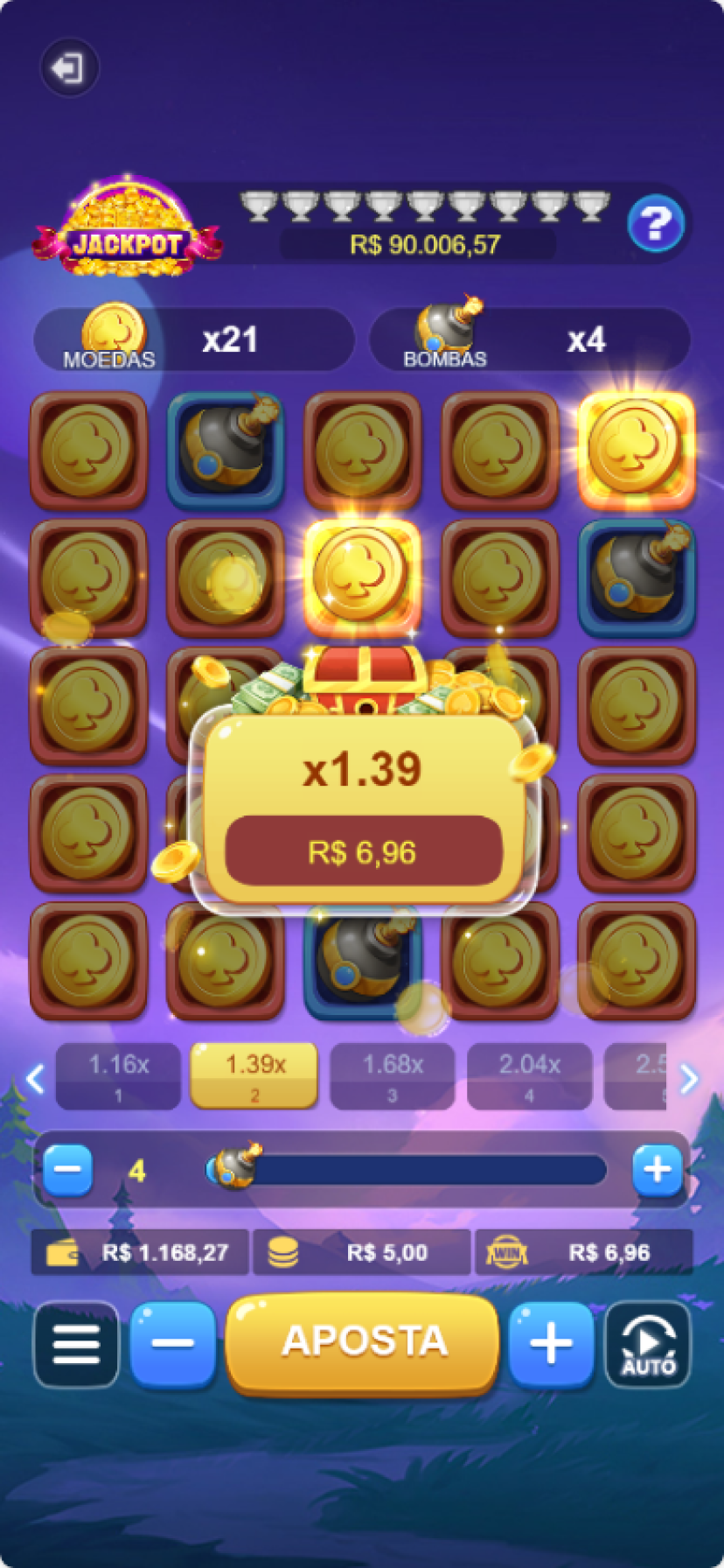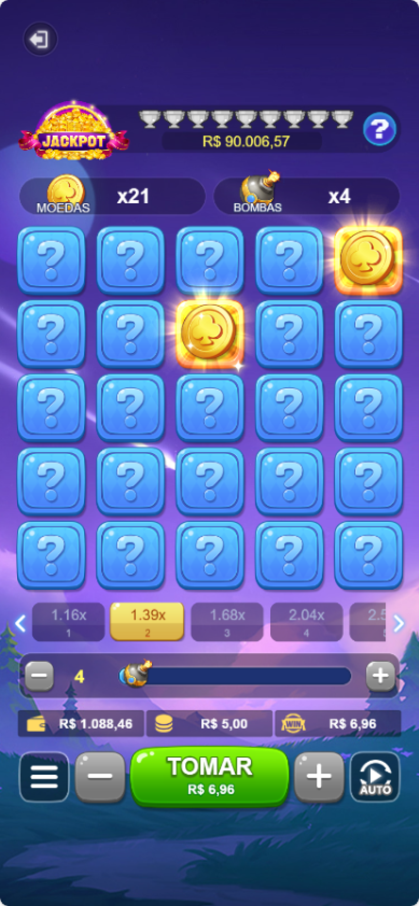A treasure chest game with a mines theme, where opening chests awards coins and the more opened, the higher the rewards. The reward limit is determined by the difficulty chosen by the player.