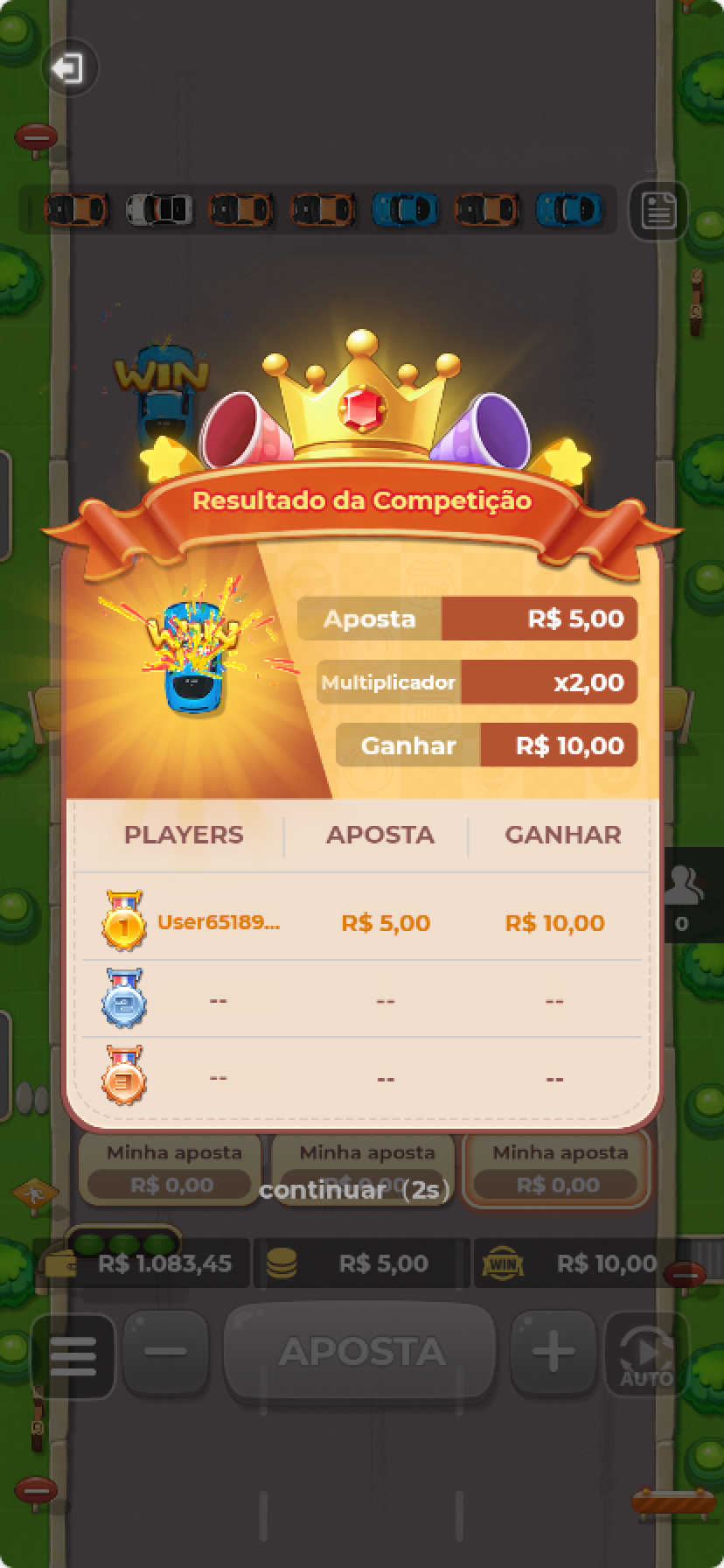 A betting game with a racing theme, where placing bets on the winning car awards prizes.