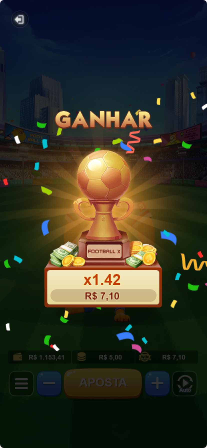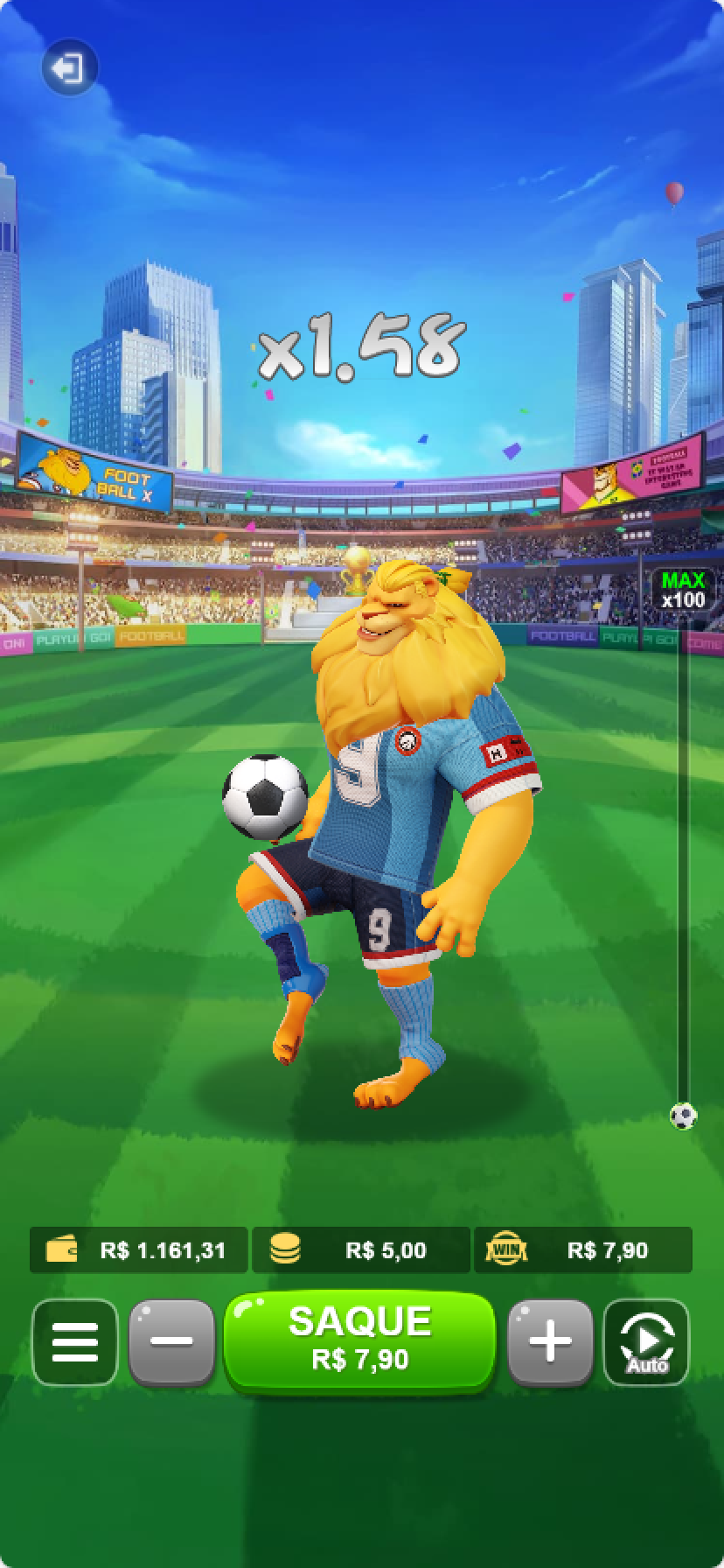 A football-themed crash game, where rewards increase with game duration and players need to choose the right time to cash out.