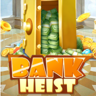A treasure chest game with a bank heist theme, where collecting 3 identical items awards a prize.